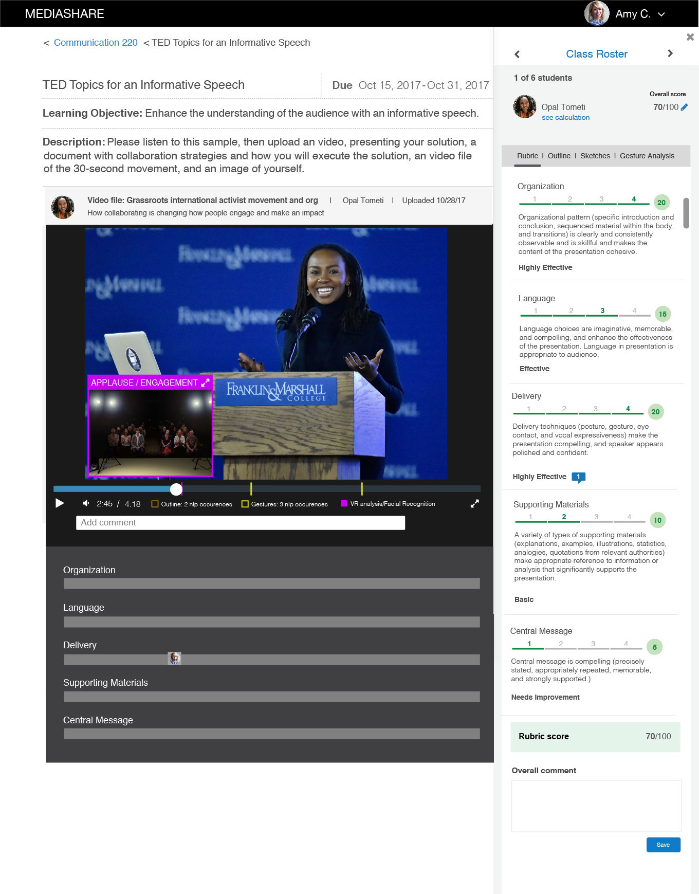 Contextual Commenting in MediaShare for a Speech class.