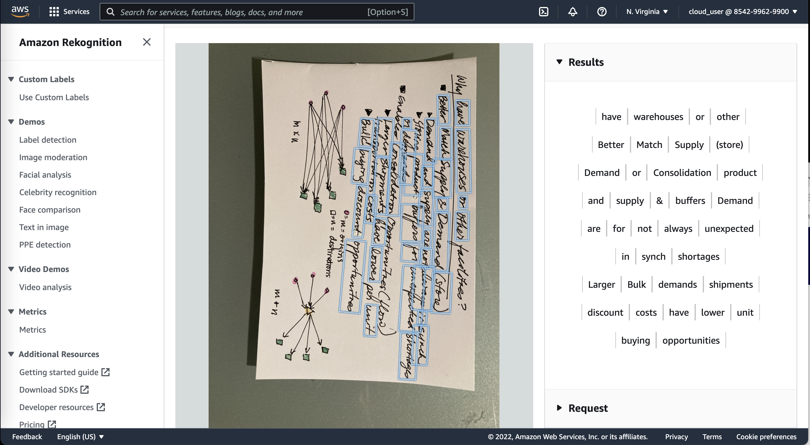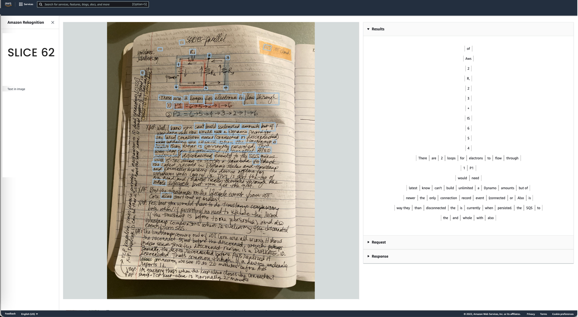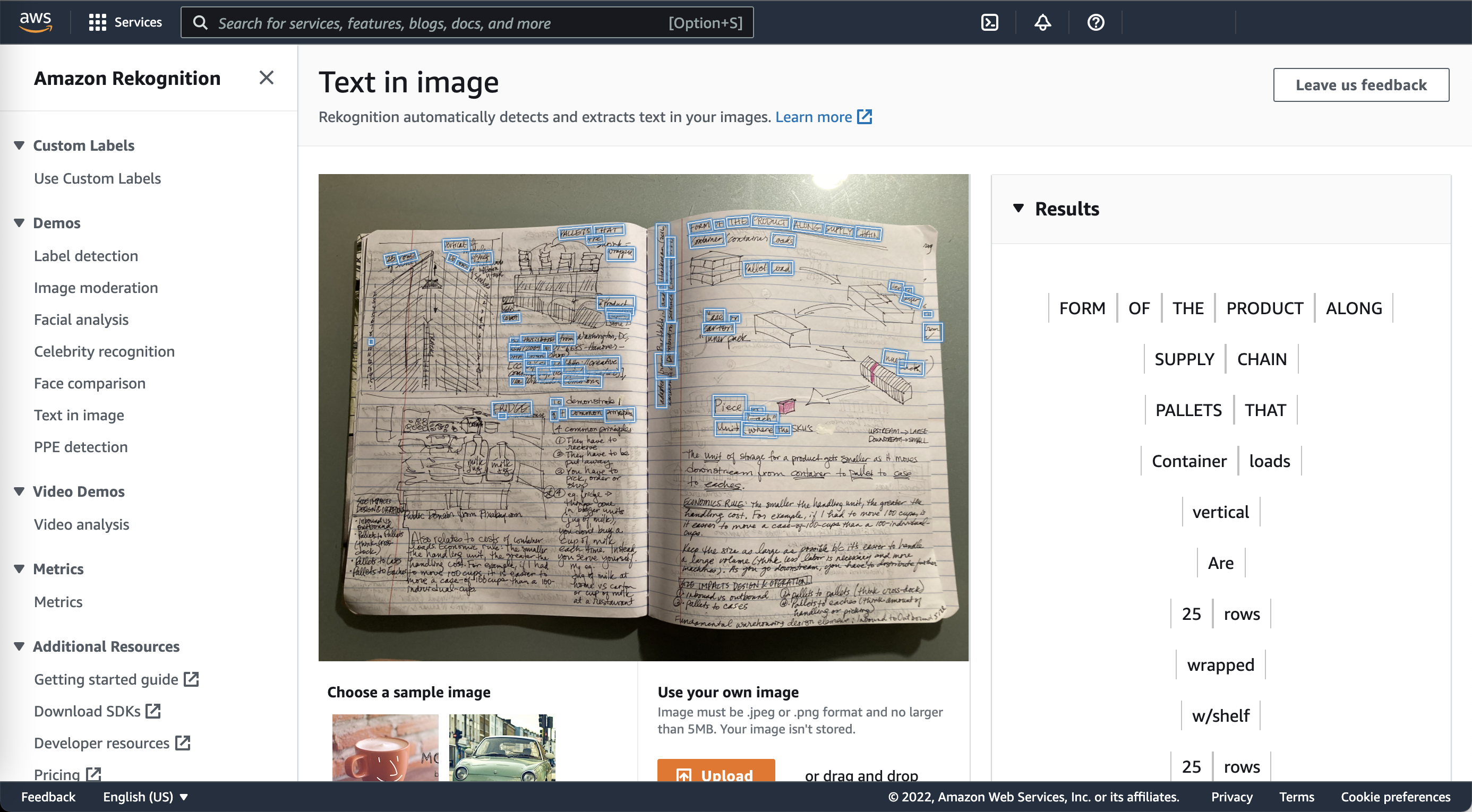 This project was created after scanned notes after taking Chris Sziklas' and Matthew Juliana's Racskpace University course. A colleague in a 7:00am session shared her digital notebook technology. Shortly, after I purchased the Moleskine notebook technology, and tried the experience myself. Although there were some quirks with the mobile application, it still was an interesting concept. I still was not able to share my Moleskine notes of the AWS class with anybody. But at one of the "Water Cooler" meetings, the Engineers in our department brainstormed Ai with Amazon's service, titled Rekognition. There were some privacy concerns about a User's handwriting tied to an identity.